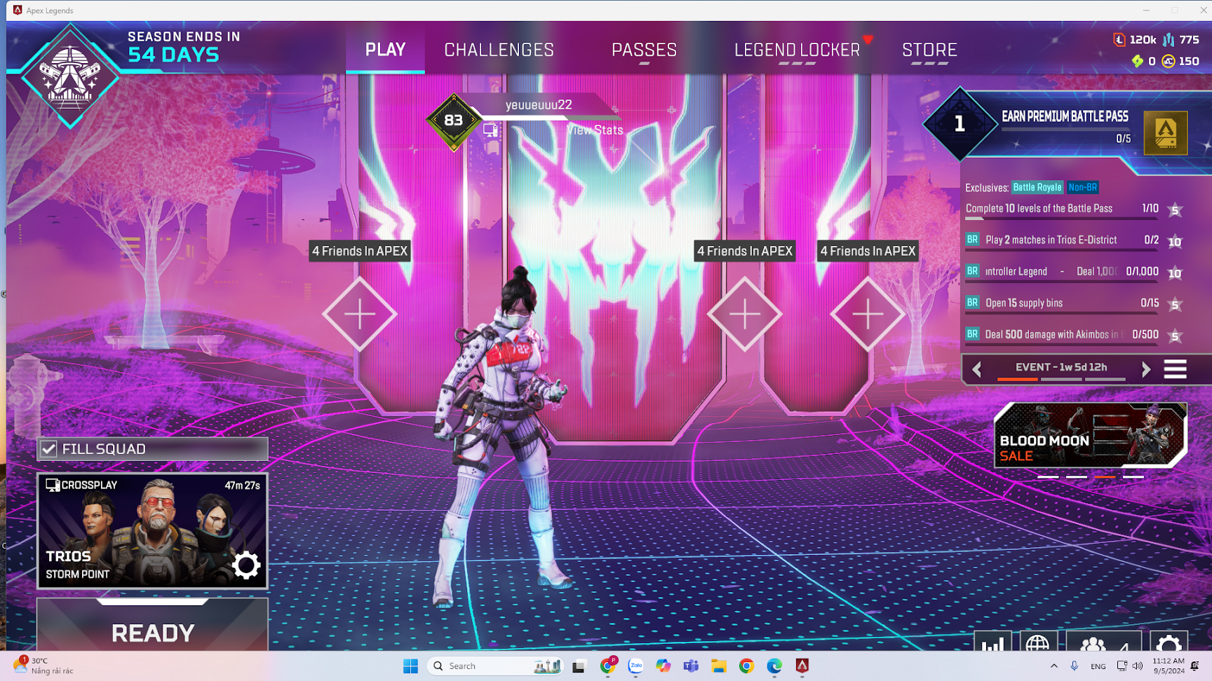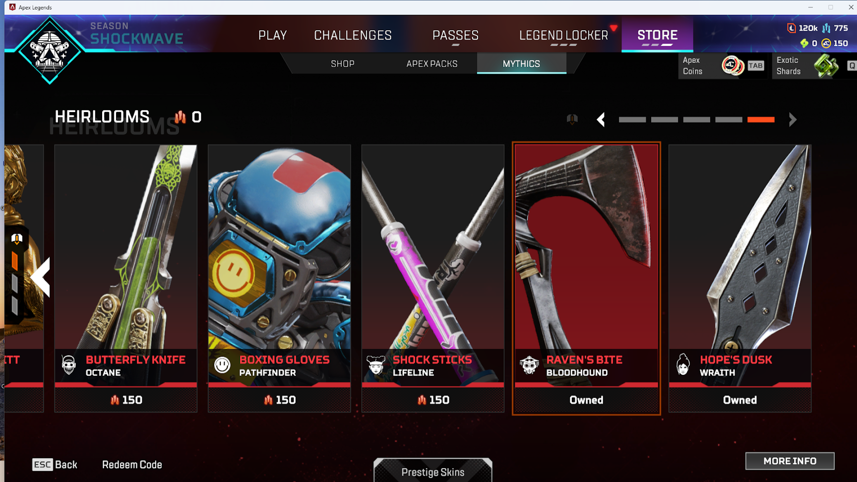 APEX343 Lv 1083 | X2 HEIRLOOM ( Bloodhound -Wraith ) – 140 Legnedary Skin – Metal Craft 120k – Token 775 – AC coins 150 – BP 8 11 12 13 14 – BG 22
