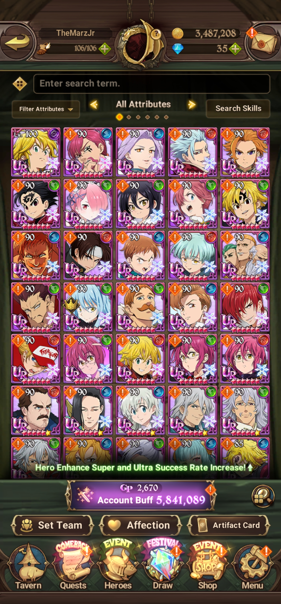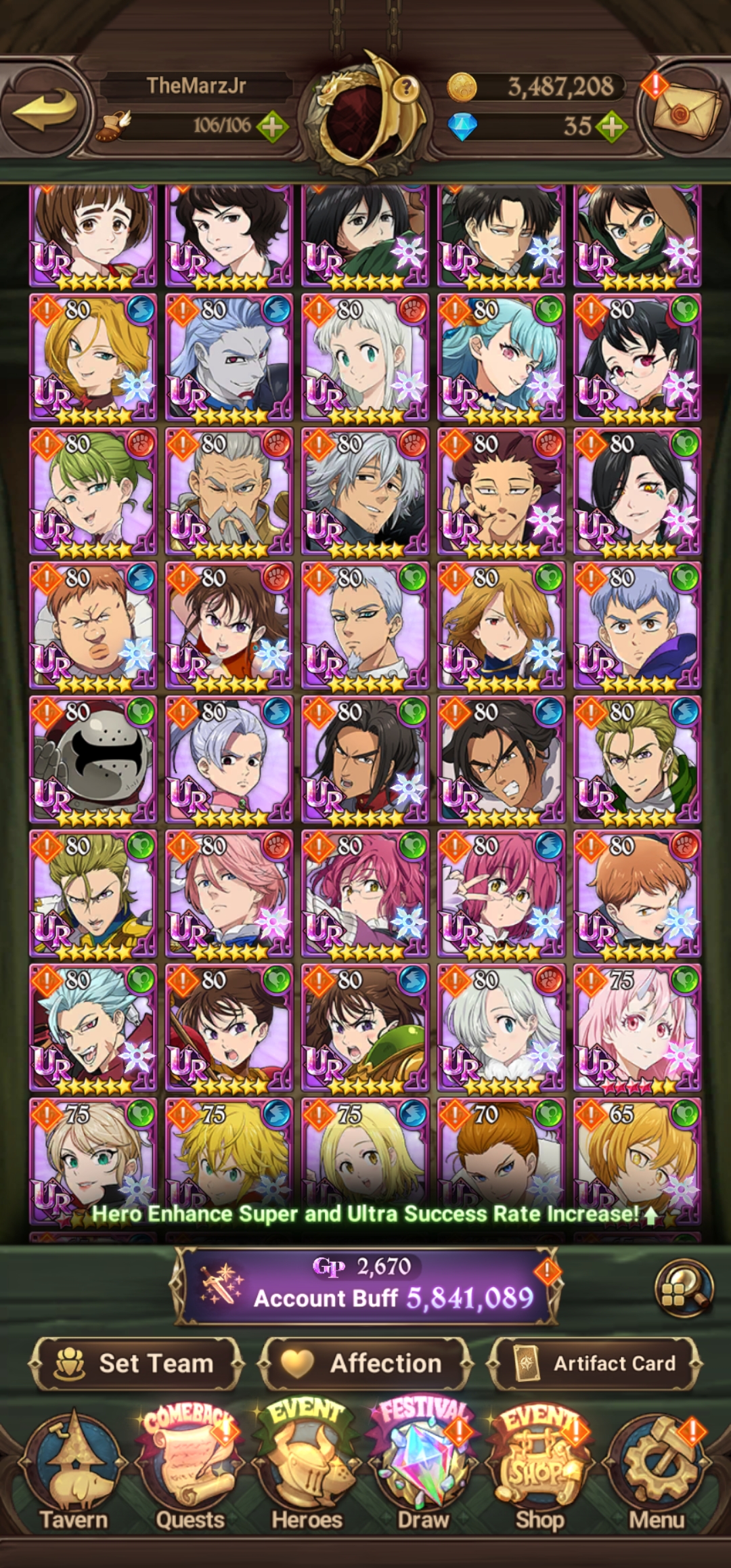 200 characters account. Stopped playing around 1-2 years ago and don’t need the account anymore. There are very limited characters in this account such as stranger things, attack on titan, reincarnated as a slime, king of fighters, and re:zero. This account also includes the alternate outfits for most of these limited characters and the rest of the 7ds cast.