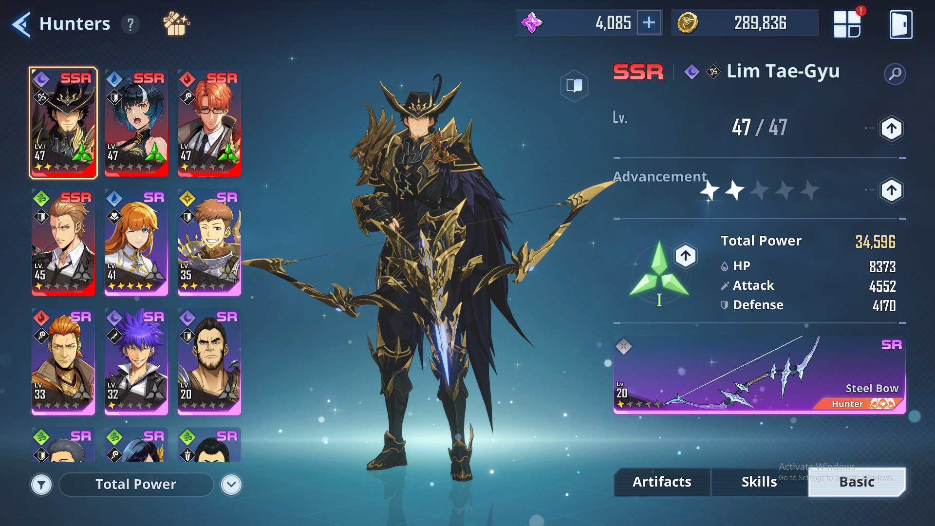 SLA20: 13 SSR – Seo Jiwoo – Choi Jong-In (A1) – Lim Tea Gyu (A2) – Woo Jinchul (A1) -124k pow – chap 15- 4k gems